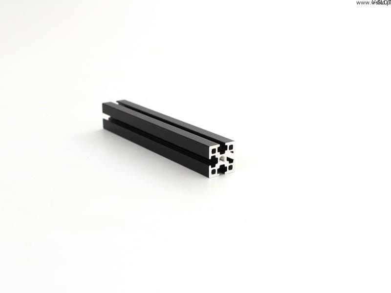Hliníkové profily jsou černě nebo stříbrně eloxované, mají duté jádro a na každém konci otvory se závitem.