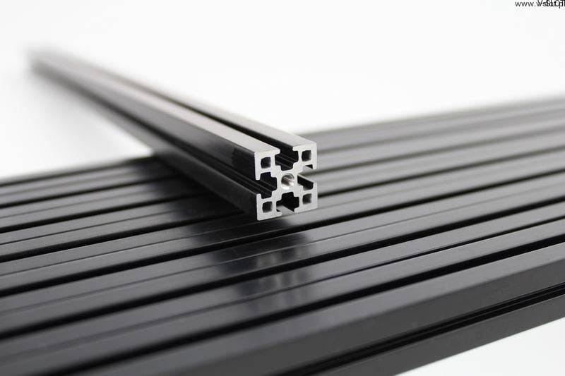 Hliníkové profily jsou eloxované v černé nebo stříbrné barvě, mají duté jádro a na každém konci otvory se závitem.