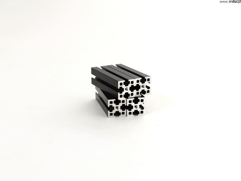 Hliníkové profily jsou eloxované v černé nebo stříbrné barvě, mají duté jádro a na každém konci otvory se závitem.