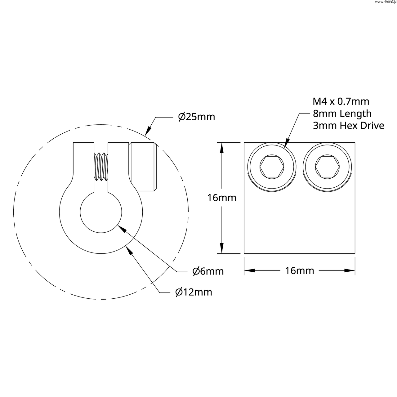 Tyto spojky jsou kompaktní a vytvářejí pevné spojení mezi oběma hřídeli. Upínací šrouby mají velikost M4 a pasují na imbusový klíč 3 mm.