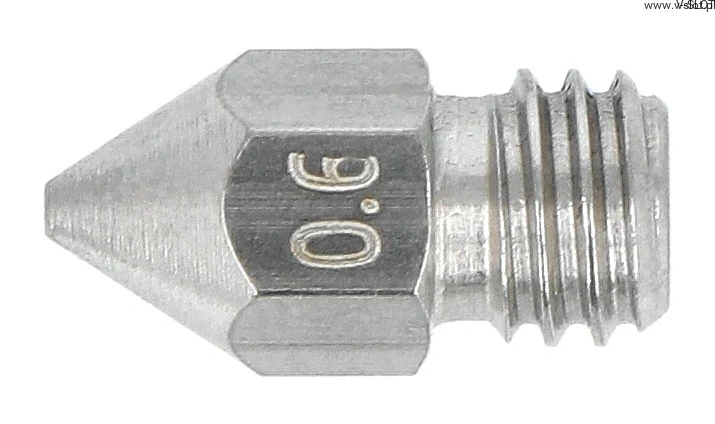 Wykonana z wysokiej jakości stali nierdzewnej, dysza MK8, z otworem o średnicy 0,6mm. Kompatybilna z większością głowic hotend wykorzystywanymi w drukarkach 3D FDM. Współpracuje z filamentami o średnicy 1,75mm. Jest to końcowy element na głowicy hotend. Jakość dyszy ma bezpośredni wpływ na końcową jakość wydruku. To przez nią roztopiony filament nanoszony jest na powierzchnię stołu roboczego.