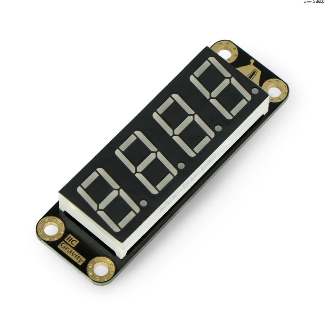 ÄŚtyĹ™mĂstnĂ˝ osmisegmentovĂ˝ displej Ĺ™ady Gravity umoĹľĹuje nastavenĂ jasu zobrazovanĂ˝ch znakĹŻ v 8 krocĂch. Modul je vybaven portem I2C kompatibilnĂm s rozhranĂm Gravity. ZaĹ™ĂzenĂ se velmi snadno pouĹľĂvá dĂky malĂ˝m rozmÄ›rĹŻm a pohodlnĂ©mu komunikaÄŤnĂmu portu.