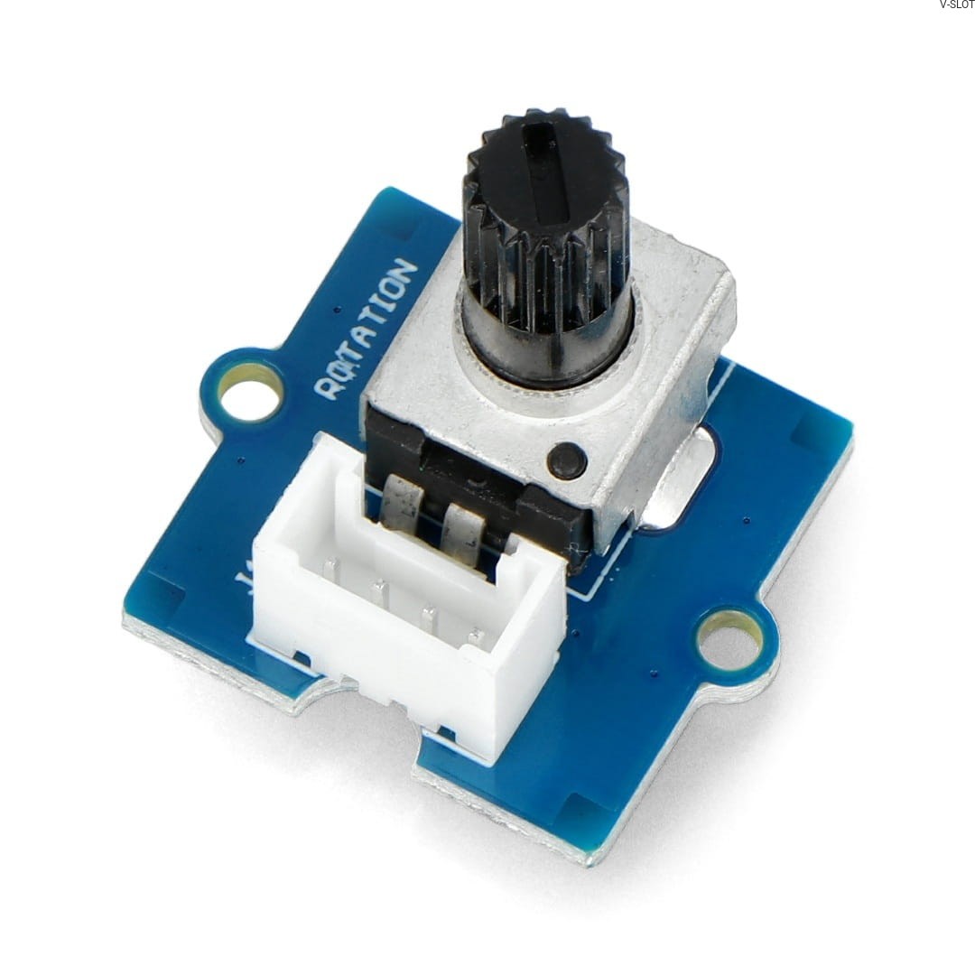 LineárnĂ otoÄŤnĂ˝ potenciometr 10 kΩ má rozsah otáčenĂ 300°. Obsahuje 4pĂłlovĂ˝ konektor Grove, kterĂ˝ je umĂstÄ›n na stranÄ› knoflĂku.