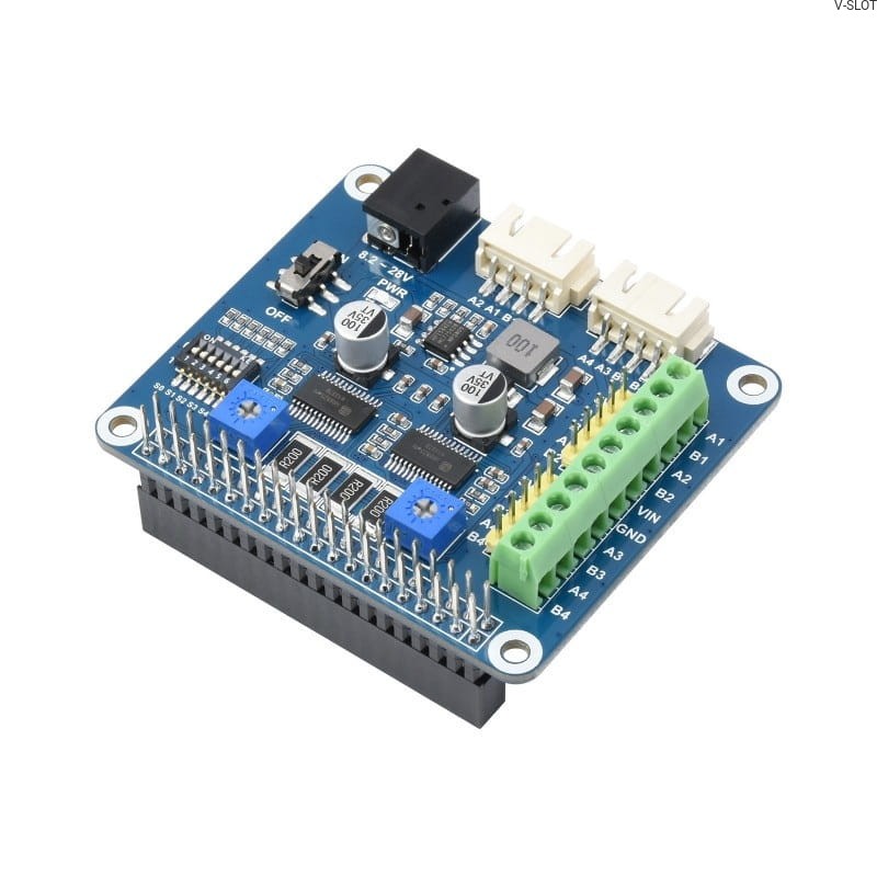 SpoleÄŤnost Waveshare navrhla dvoukanálovĂ˝ ovladaÄŤ krokovĂ©ho motoru, kterĂ˝ je dodáván ve formÄ› pĹ™ekryvnĂ©ho modulu HAT pro Raspberry Pi. Tento ovladaÄŤ pouĹľĂvá dva ÄŤipy HR8825, pracuje v rozsahu napÄ›tĂ 8,2 V aĹľ 28 V a mĹŻĹľe dosáhnout proudu aĹľ 2,5 A. Modul pracuje v šesti mikrokrokovĂ˝ch reĹľimech: plnĂ˝ krok, poloviÄŤnĂ krok, 1/4 kroku, 1/8 kroku, 1/16 kroku a 1/32 kroku. ĹĂdicĂ jednotka je navĂc vybavena Ĺ™adou ochrannĂ˝ch funkcĂ, jako je nadproudová ochrana (OCP), vypnutĂ pĹ™i pĹ™ekroÄŤenĂ danĂ© teploty (TSD) a podpěťová pojistka VM (UVLO). DĂky tÄ›mto funkcĂm má uĹľivatel jistotu, Ĺľe jeho motor je bezpeÄŤnĂ˝ a pracuje za optimálnĂch podmĂnek.
