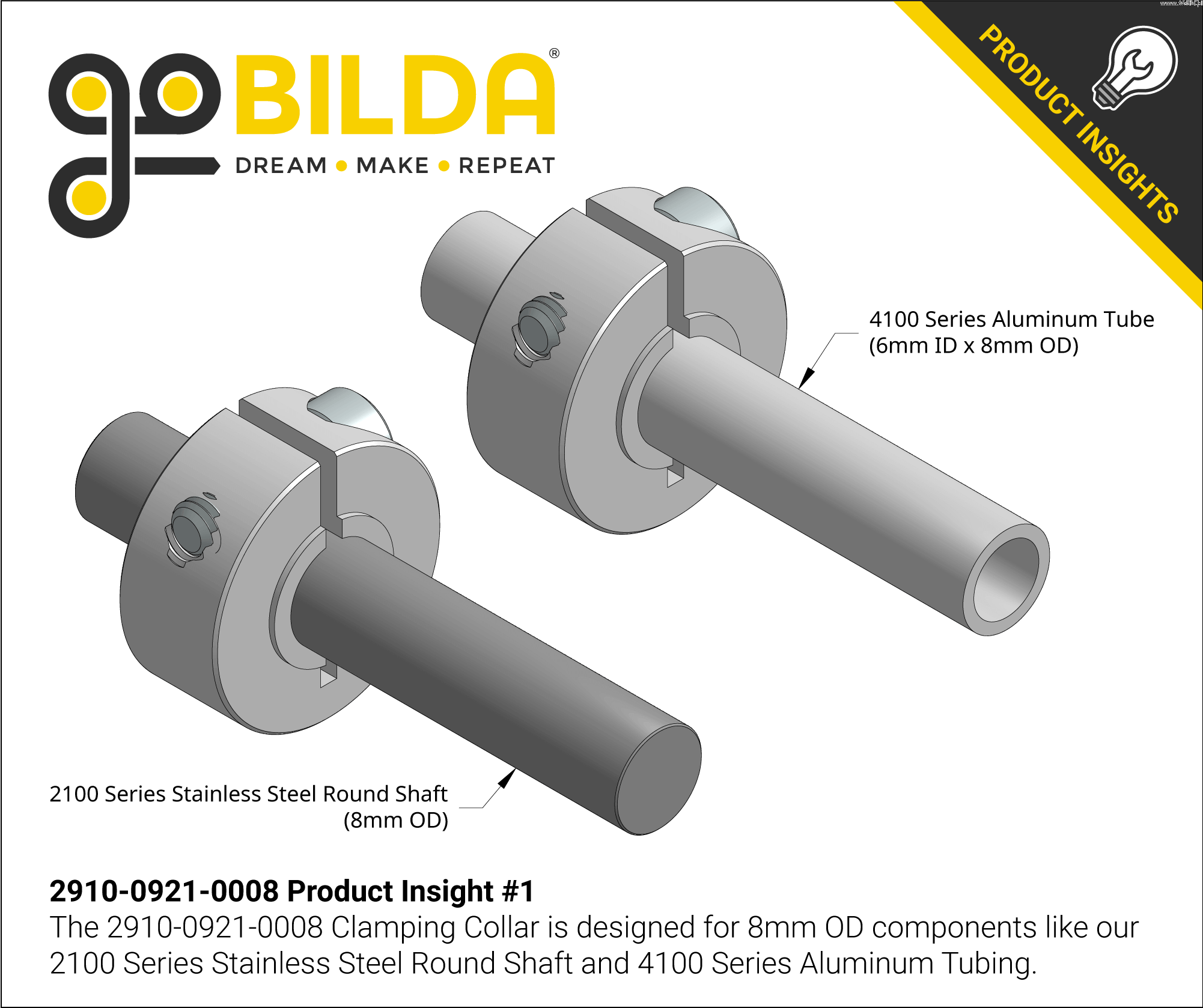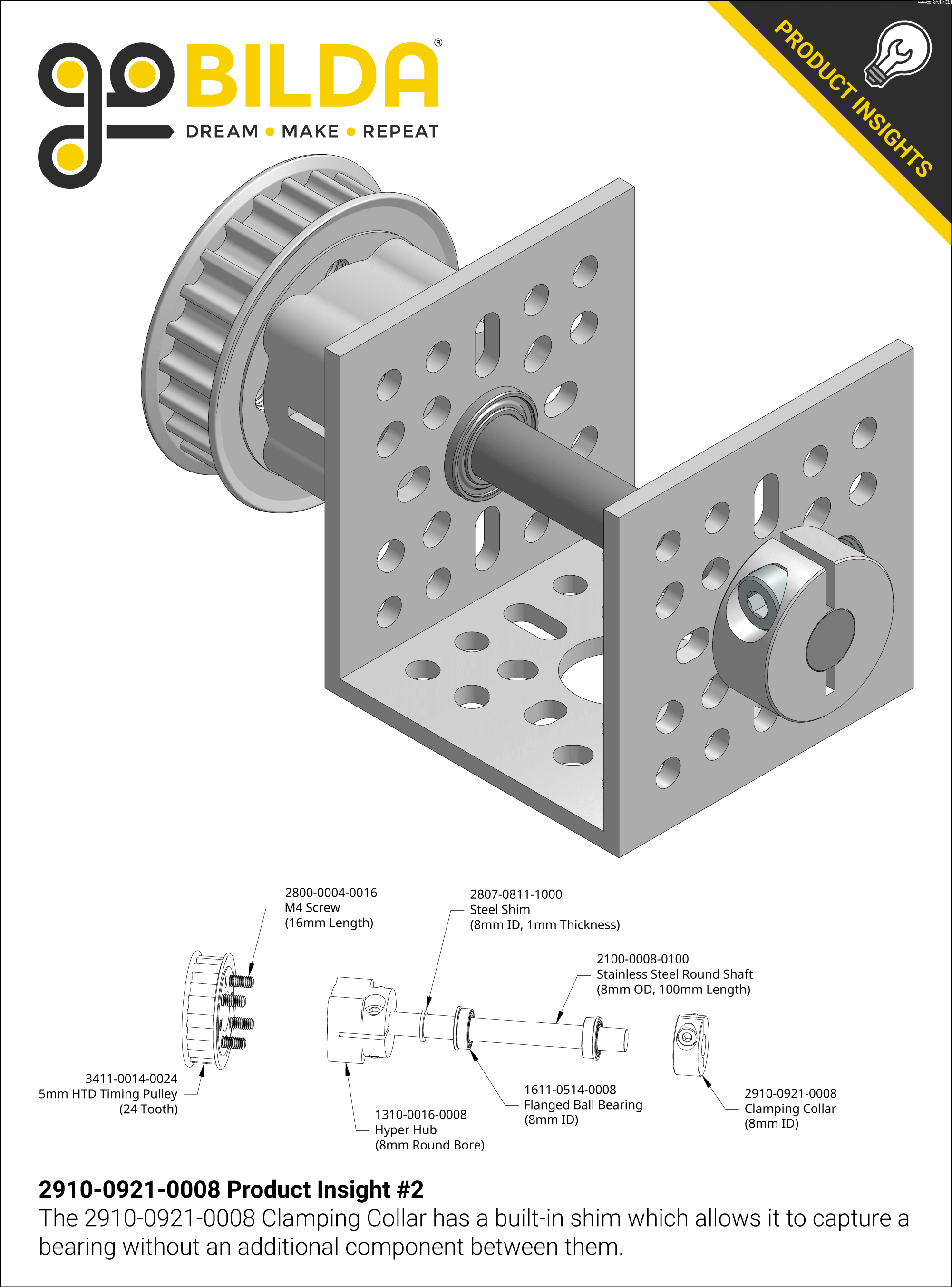 Hliníková upínací příruba řady 2910 (ID 8 mm x OD 21 mm, délka 9 mm)