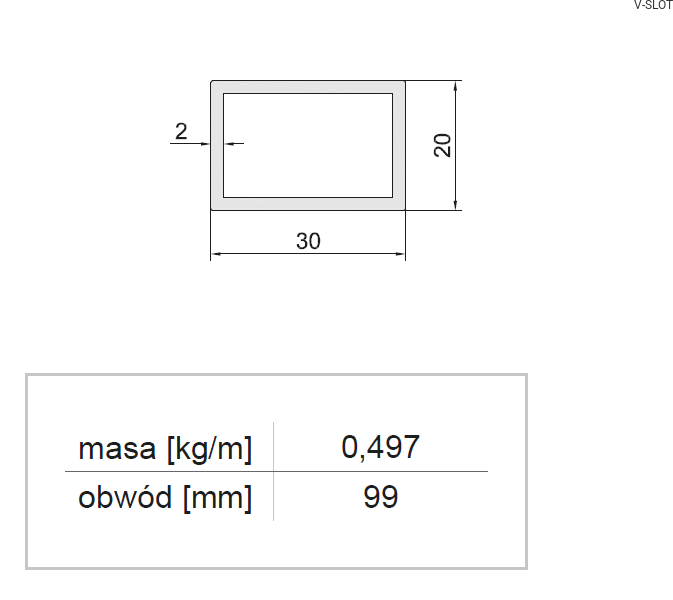 Uzavřený hliníkový profil (obdélníková trubka) 20x30x2 - řezaný na rozměr 150-3000mm