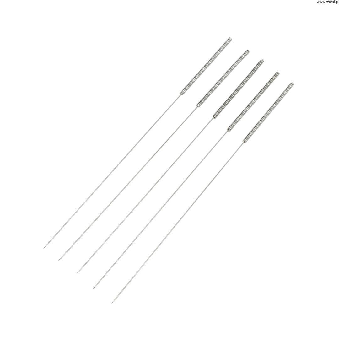 Zestaw 5 sztuk igieł do usuwania resztek materiału nagromadzonego w dyszy. Kompatybilne z dyszami o średnicy 0,3mm. Elastyczność igły niweluje ryzyko uszkodzenia, lub złamania narzędzia nawet przy silnie zapchanej dyszy. Czyszczenie pozwala zapobiec mieszaniu się starego koloru filamentu z nowym kolorem. Igła ma długość ok. 105mm, czego część czyszcząc ok. 75mm.