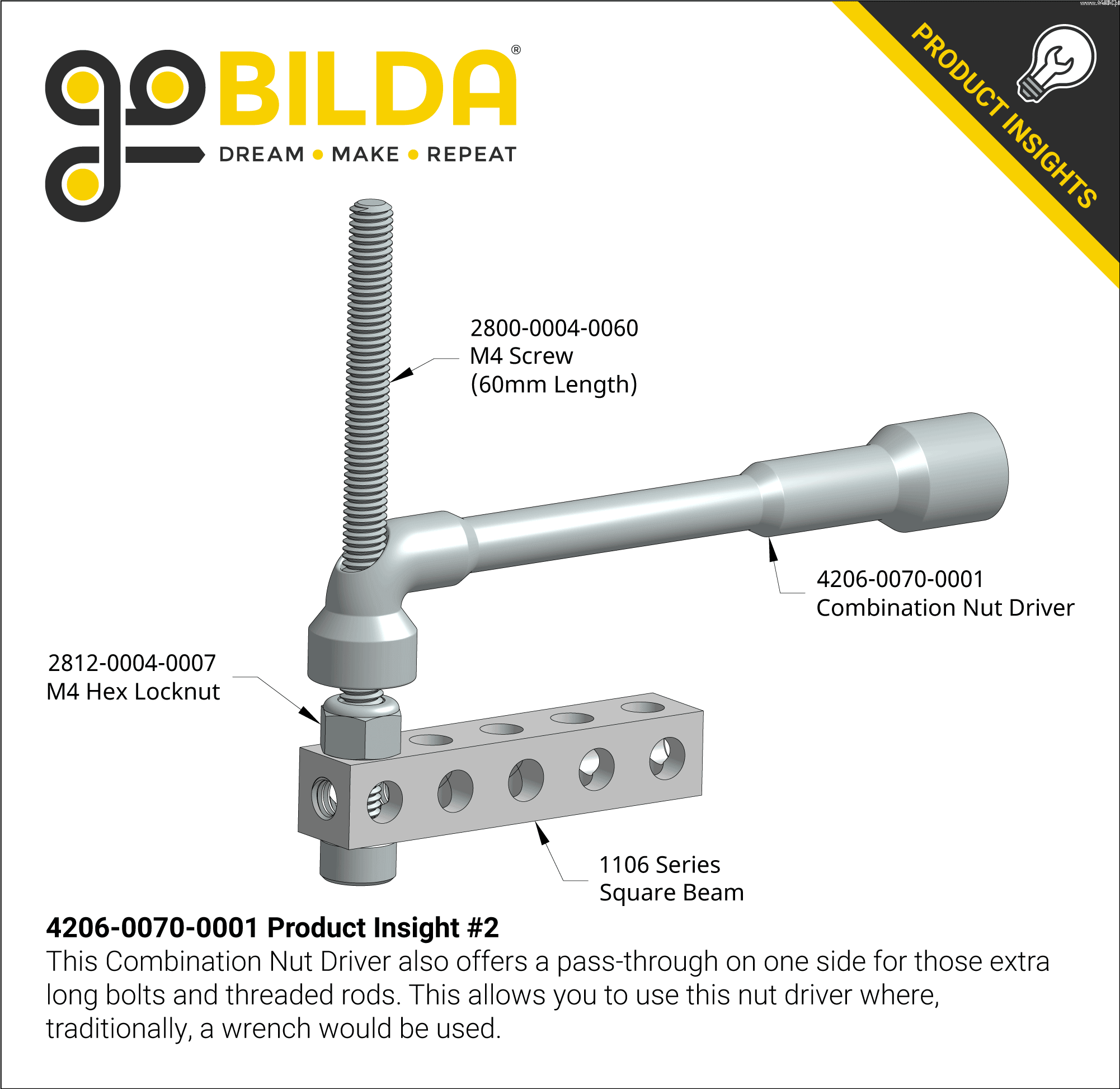 Tento kombinovaný vrták na matice je velmi užitečný. Má dlouhý a krátký konec, oba šestihranné 7 mm. Dlouhý konec má hluboký otvor, takže můžete matici zašroubovat, i když závity šroubu přesahují horní okraj matice. Můžete také použít kratší konec, který má průchozí otvor, takže není omezeno, jak daleko přesahují závity matice. Protože tento konec má celkový průměr menší než 11 mm, je zde vůle pro jeho použití na maticích v blízkosti stěny profilu 1120 a 1121.