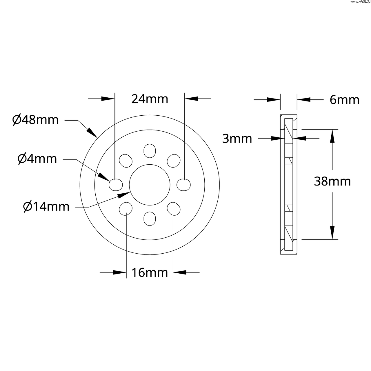 Kotoučové kolo řady 3607 (vrtání 14 mm, průměr 48 mm, černé) - 2 kusy