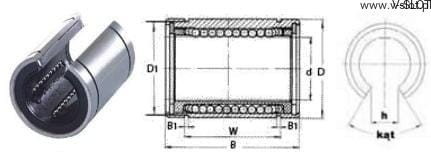 Těsněné otevřené lineární ložisko LM 20 OP Lineární ložisko LM20OP Pro hřídel o průměru 20 mm Vlastnosti: - Maximální rychlost jízdy 3-5 m/sec. - rozsah pracovních teplot -20 °C až 80 °C - koeficient tření 0,001-0,005 - tolerance montážního otvoru H7 Závěs je pevné konstrukce, s těsněním na obou stranách, japonský rozměrový standard. Otevřená lineární ložiska - typ LM...OP : Otevřená lineární ložiska mají v technice lineárních pohybů široké uplatnění. Vnější plášť je vyroben z ložiskové oceli. Klec je vyrobena z plastu. Ložiska jsou z obou stran utěsněna vulkanizovaným pojistným kroužkem, který zabraňuje hromadění různých druhů nečistot na ložiskových drahách. Toto ložisko se používá především pro hřídele na podpěře. Toto ložisko lze namontovat do pouzdra SME..OP, nebo lze do pouzdra SME..LOP vložit dvě ložiska. Vodicí válečky lícující s lineárními ložisky by měly být vyrobeny s tolerancí h6, tvrdostí 60HRC a drsností povrchu nejméně 0,30um Ra. Ložisko musí být před montáží namazáno ložiskovým tukem.
