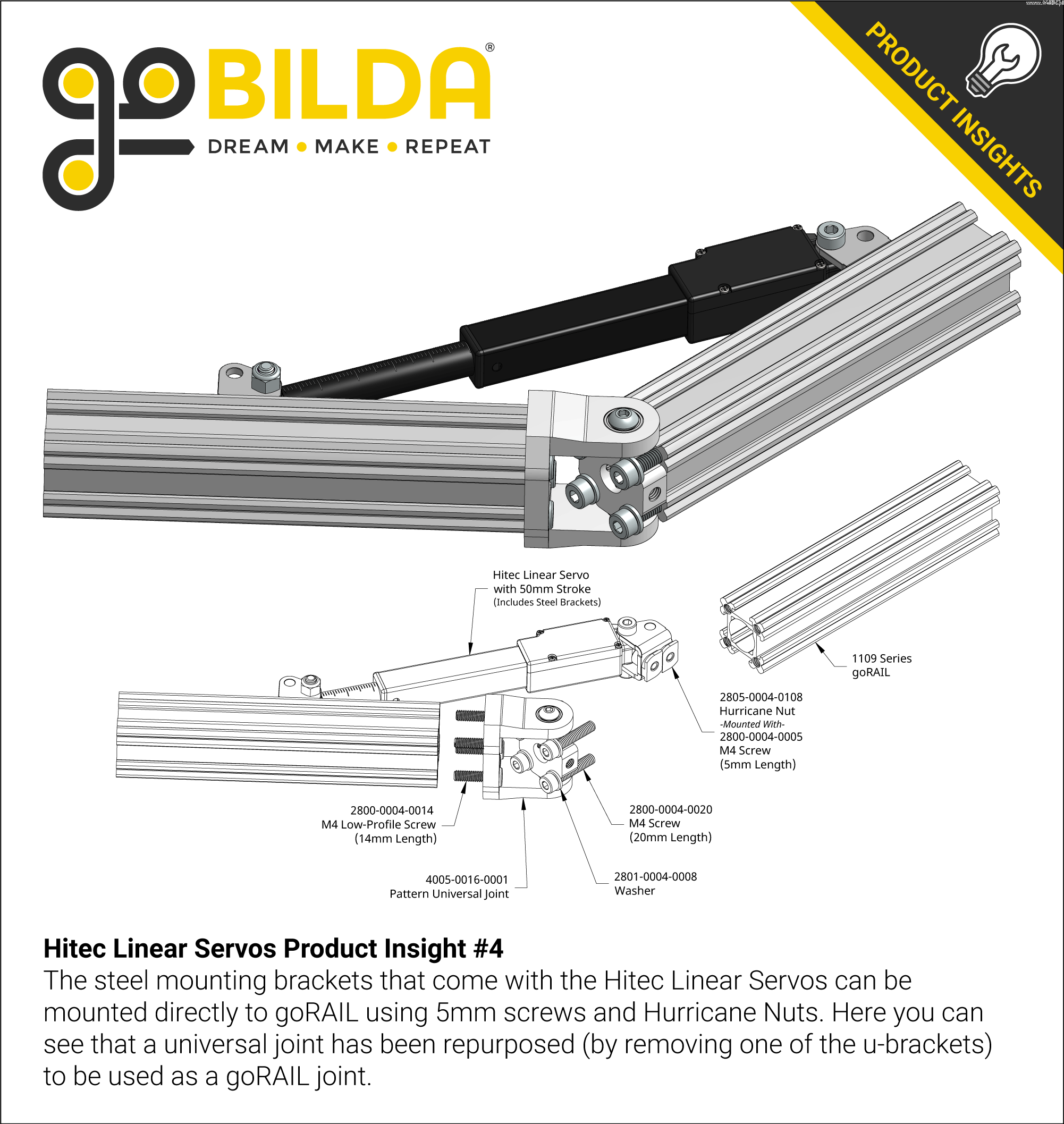 Lineární servo Hitec (rozteč 100 mm, 30,9 mm/s, tah 3,1 kg)