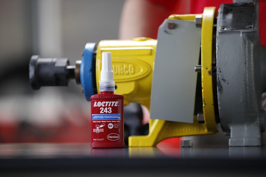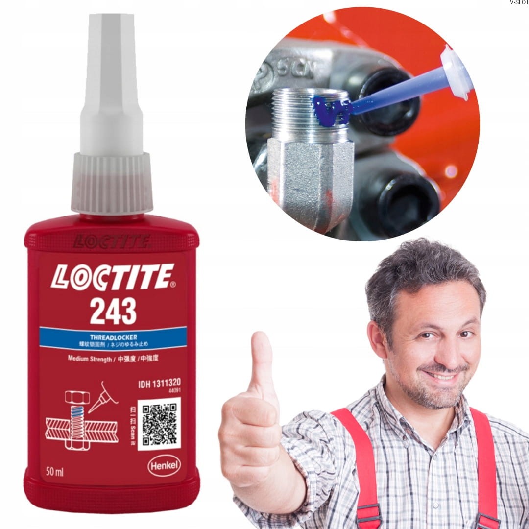 Loctite 243 slouží k zajištění a utěsnění závitových spojů, jako jsou matice a šrouby, čímž zabraňuje jejich samovolnému povolení v důsledku vibrací a rázů.