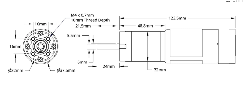 - Otáčky naprázdno při 12V DC: 117 ot/min.