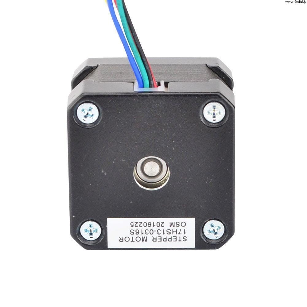 Jedná se o unipolární krokový motor Nema 17 s úhlem kroku 1,8 stupně a velikostí 42x42x33 mm. Má 6 vodičů, každá fáze odebírá 0,31 A při 12 V, s přídržným momentem 15,8 Ncm.