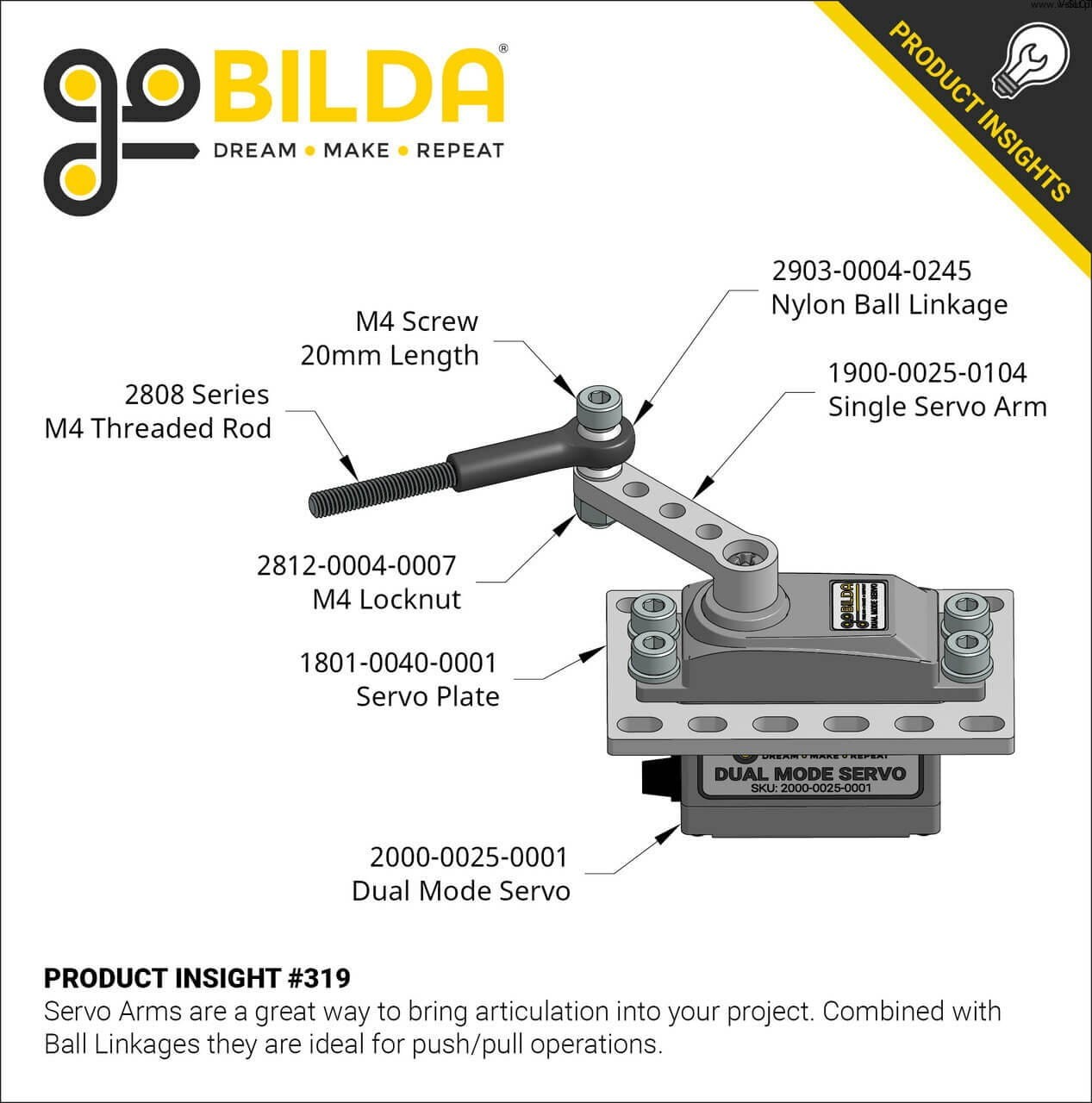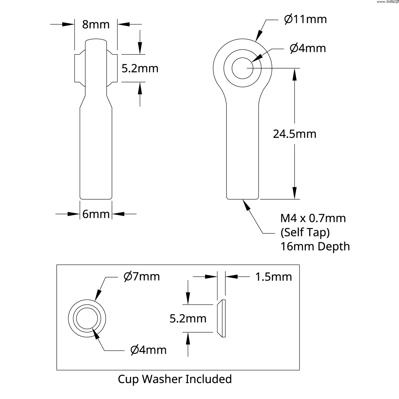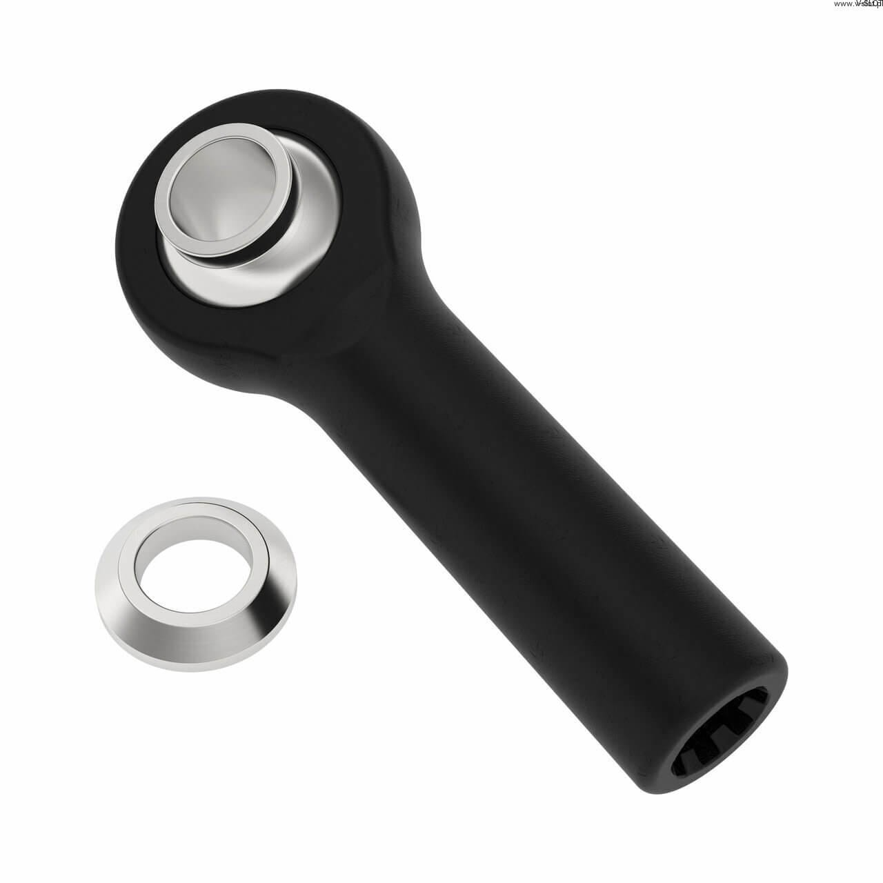 Tato nylonová kulová spojka má vnitřní hřídel, která umožňuje vytvoření závitu spojkou M4 nebo závitovou tyčí. Ocelový konec koule se může volně otáčet uvnitř nylonového těla, což vaší spojce umožňuje přenášet sílu, která na ni působí, bez zbytečných ztrát výkonu. Přiloženou podložku lze použít ke zvětšení rozsahu pohybu přidáním vůle mezi tělem a spojkou, která slouží k zajištění koule k ovládací ploše.