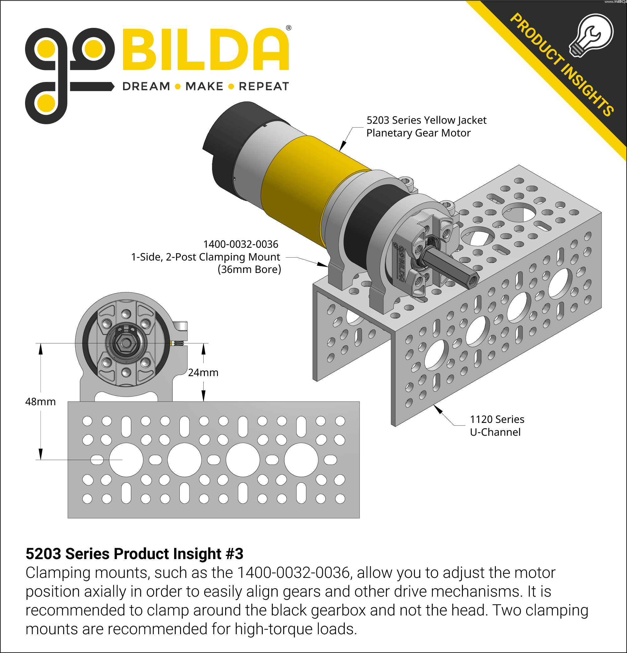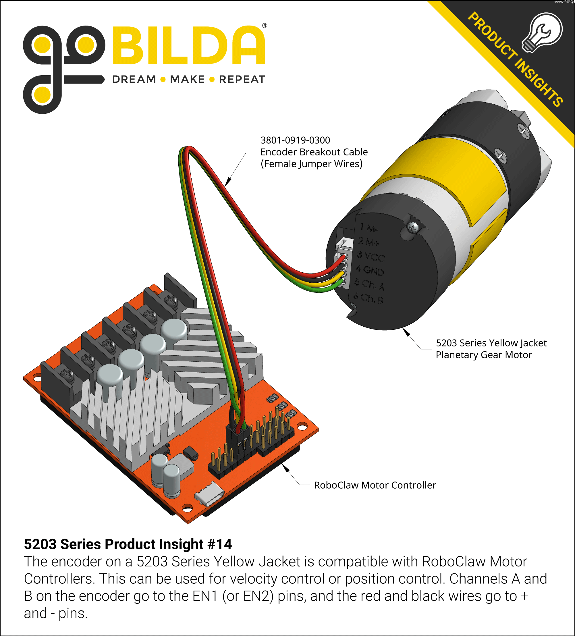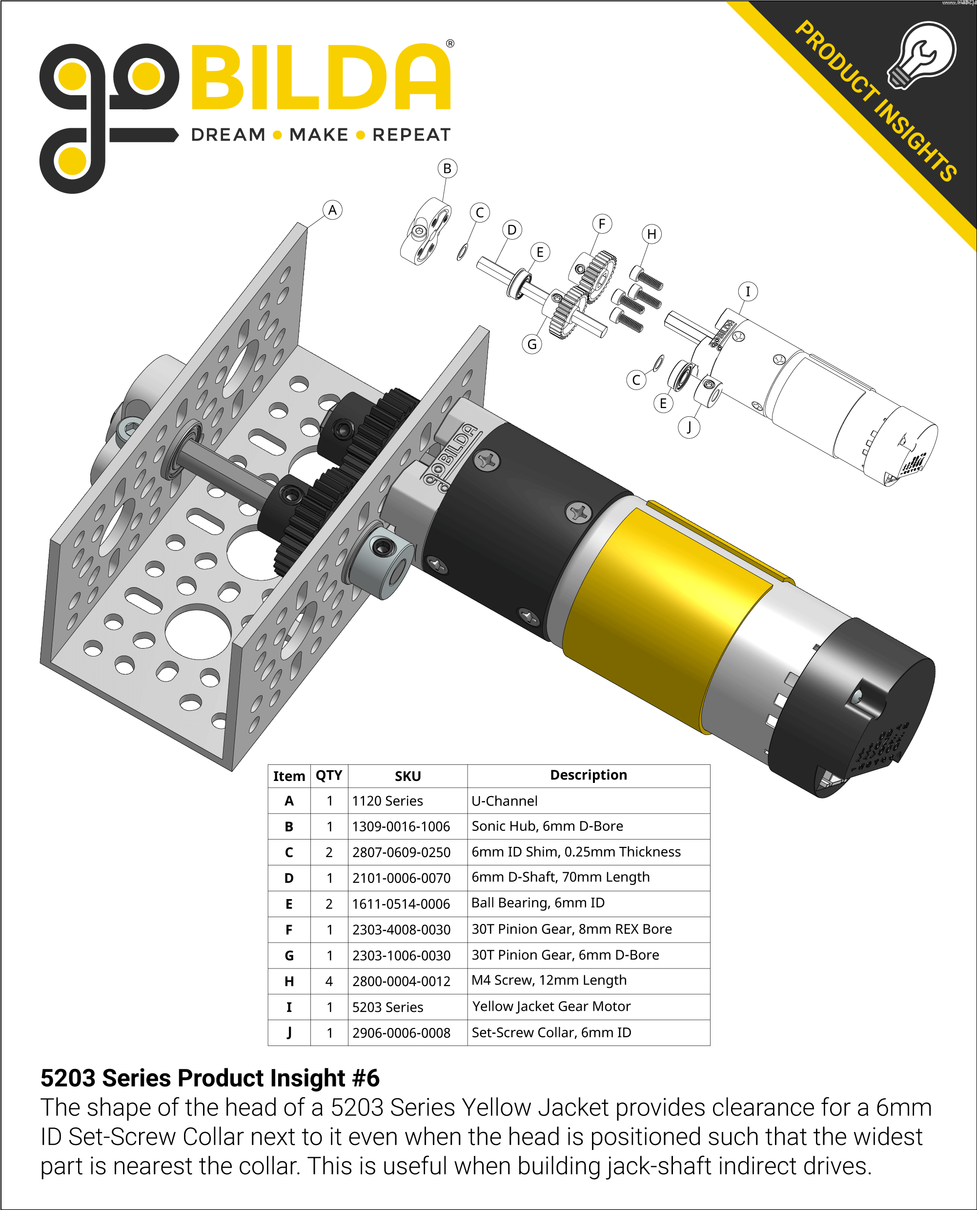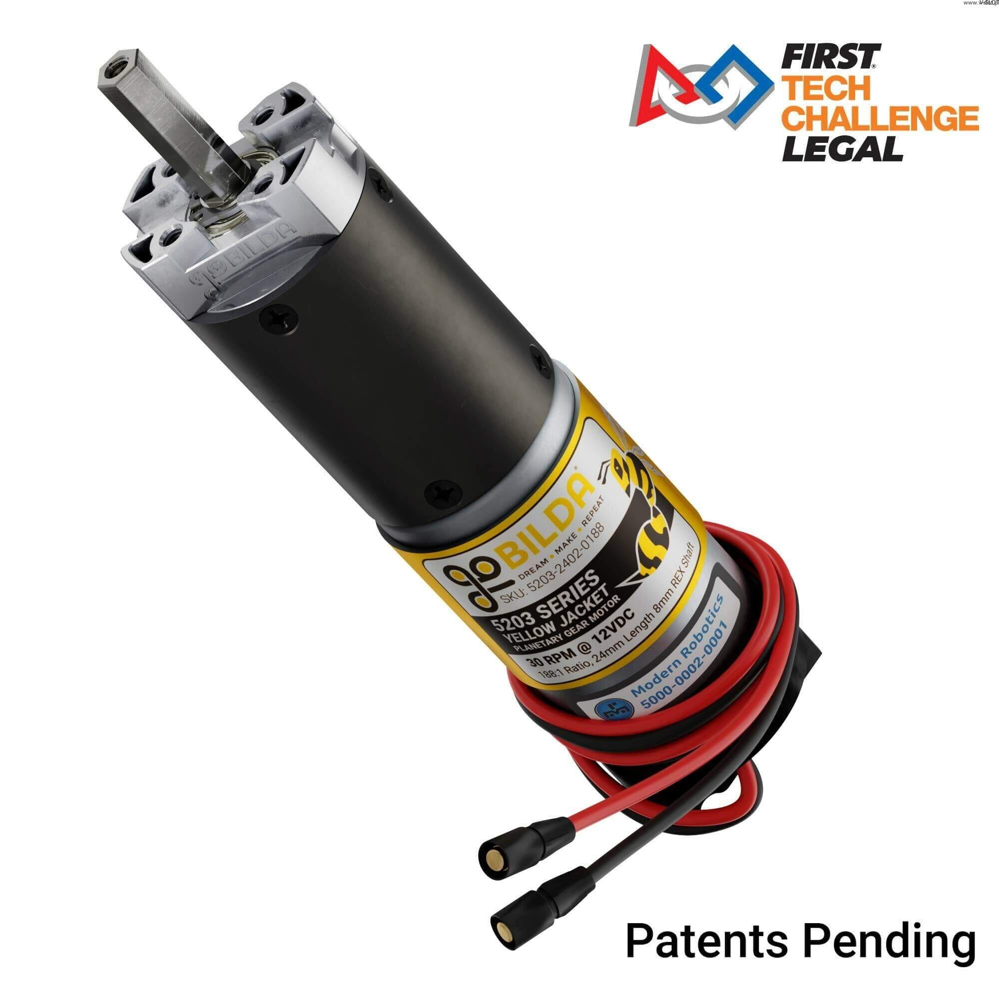 Planetový převodový motor se žlutým krytem řady 5203 (převodový poměr 188: 1, délka 24 mm, hřídel REX 8 mm, 30 ot/min, snímač 3,3 - 5 V)