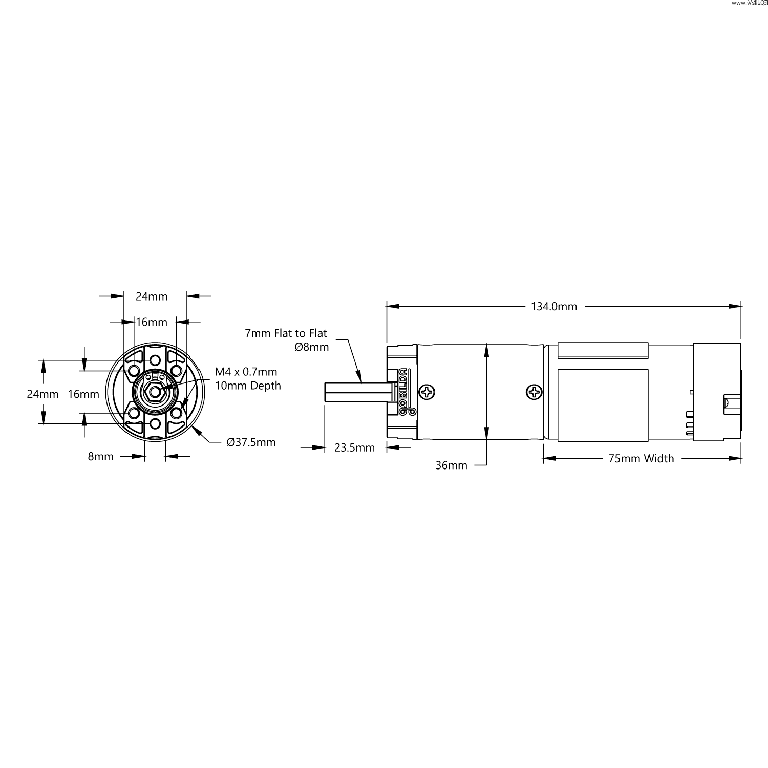 | Výstupní hřídel | 8 mm REX, délka 24 mm |