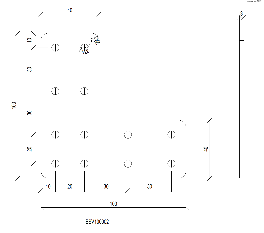 Spojovací prvek z hliníku o tloušťce 3 mm.