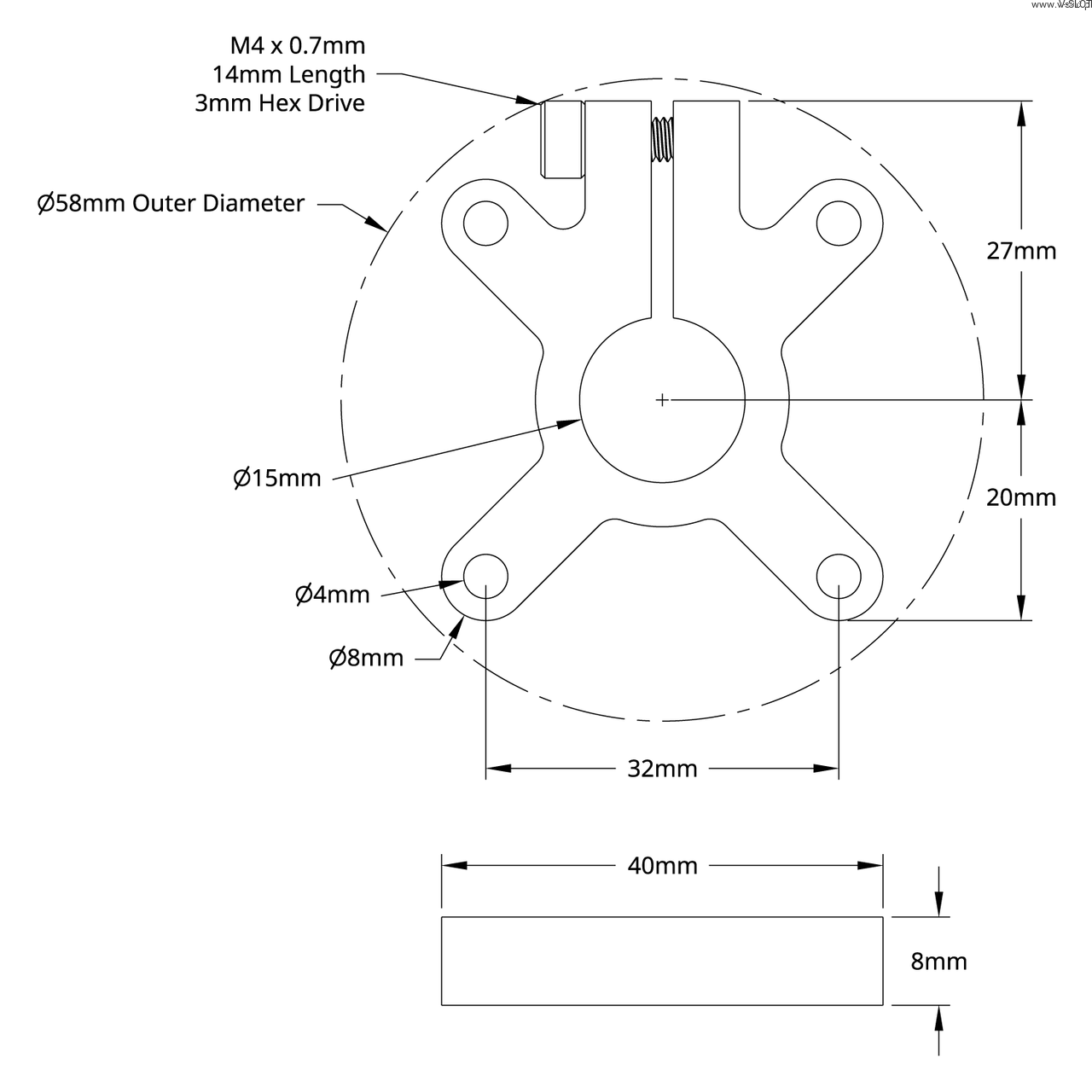 Průchozí náboj řady 1305 (otvor 15 mm)