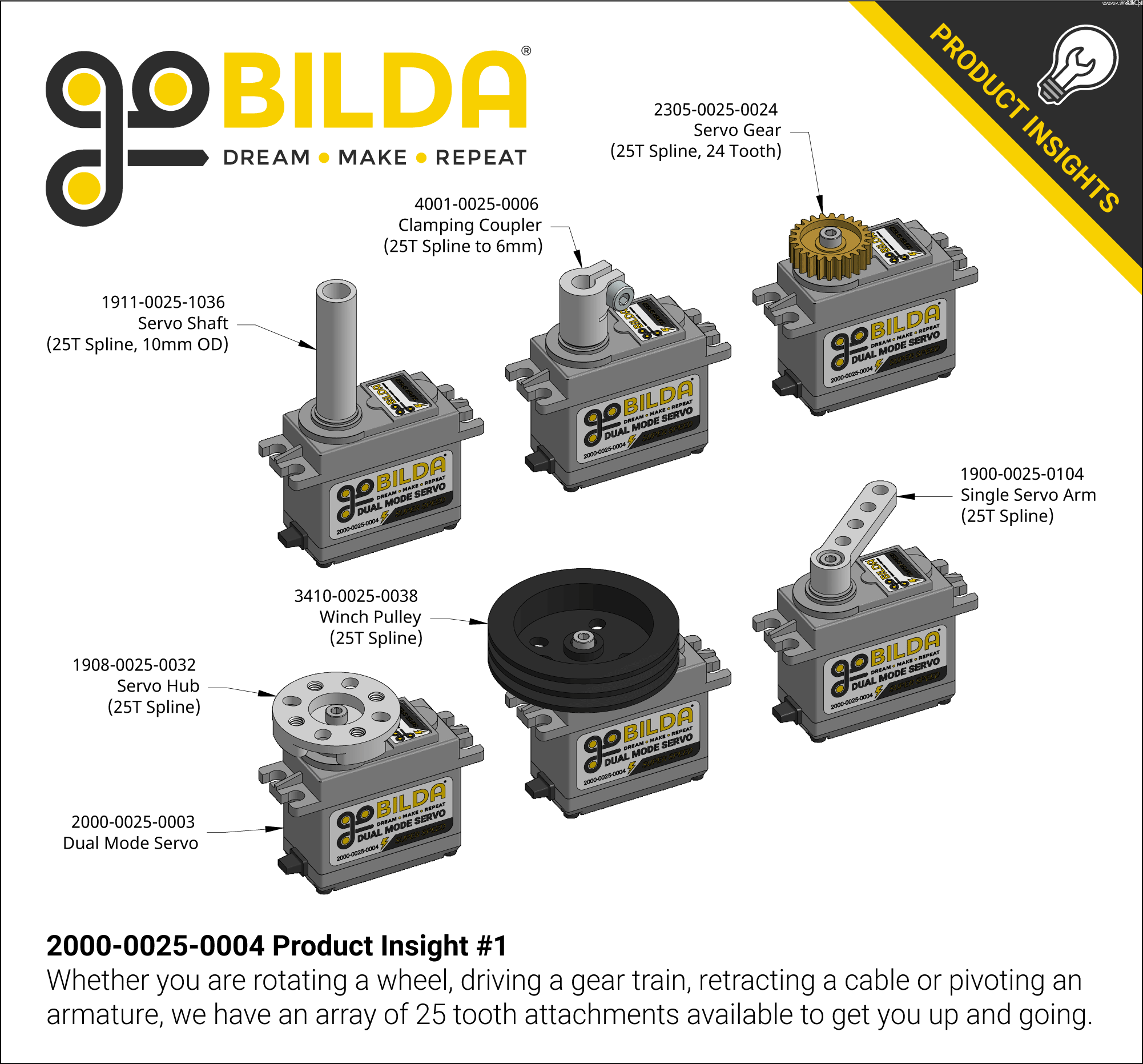 Stejně jako ostatní serva řady 2000 nabízí toto servo dva různé režimy, které mu umožňují plnit v robotovi různé role. Ve výchozím režimu se servo dokáže otáčet o 300 stupňů se zpětnou vazbou polohy. V tomto režimu určuje polohu serva signál PWM. Pomocí programátoru serv řady 3102 Dual Mode (1-1) lze servo přepnout do režimu plynulého otáčení. V tomto režimu bude mít servo proporcionální řízení otáček na základě signálu PWM, který vyšlete pomocí servoregulátoru.