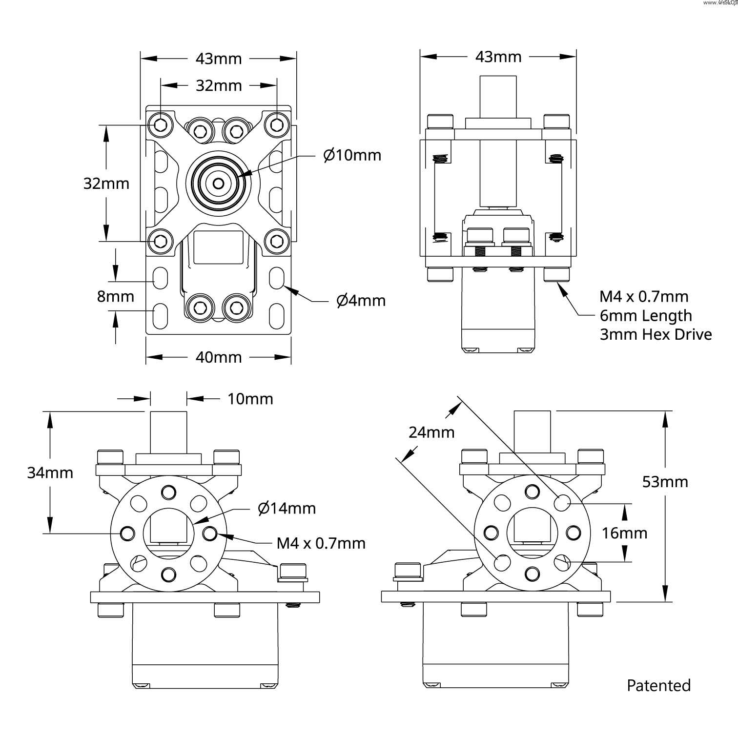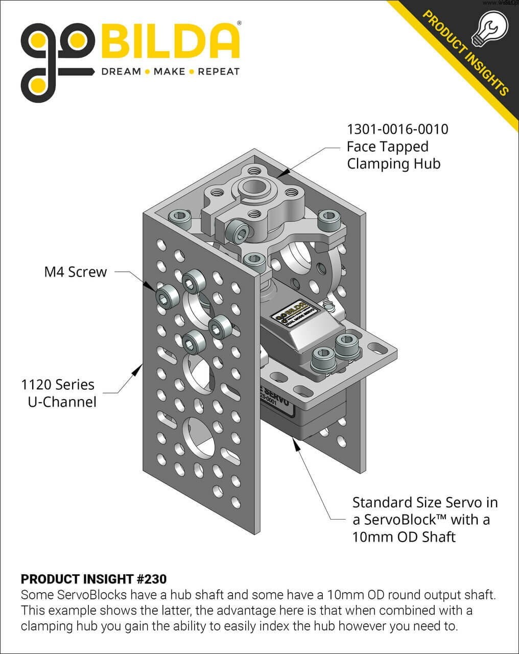 Oddělte radiální zátěž od serva pomocí ServoBlocku! Tato verze s 24 zuby má hřídel o průměru 10 mm, na kterou se vejde 10mm upínací náboj. To vám dává možnost rychle a snadno upravit polohu součástí připevněných k náboji bez nutnosti demontáže.