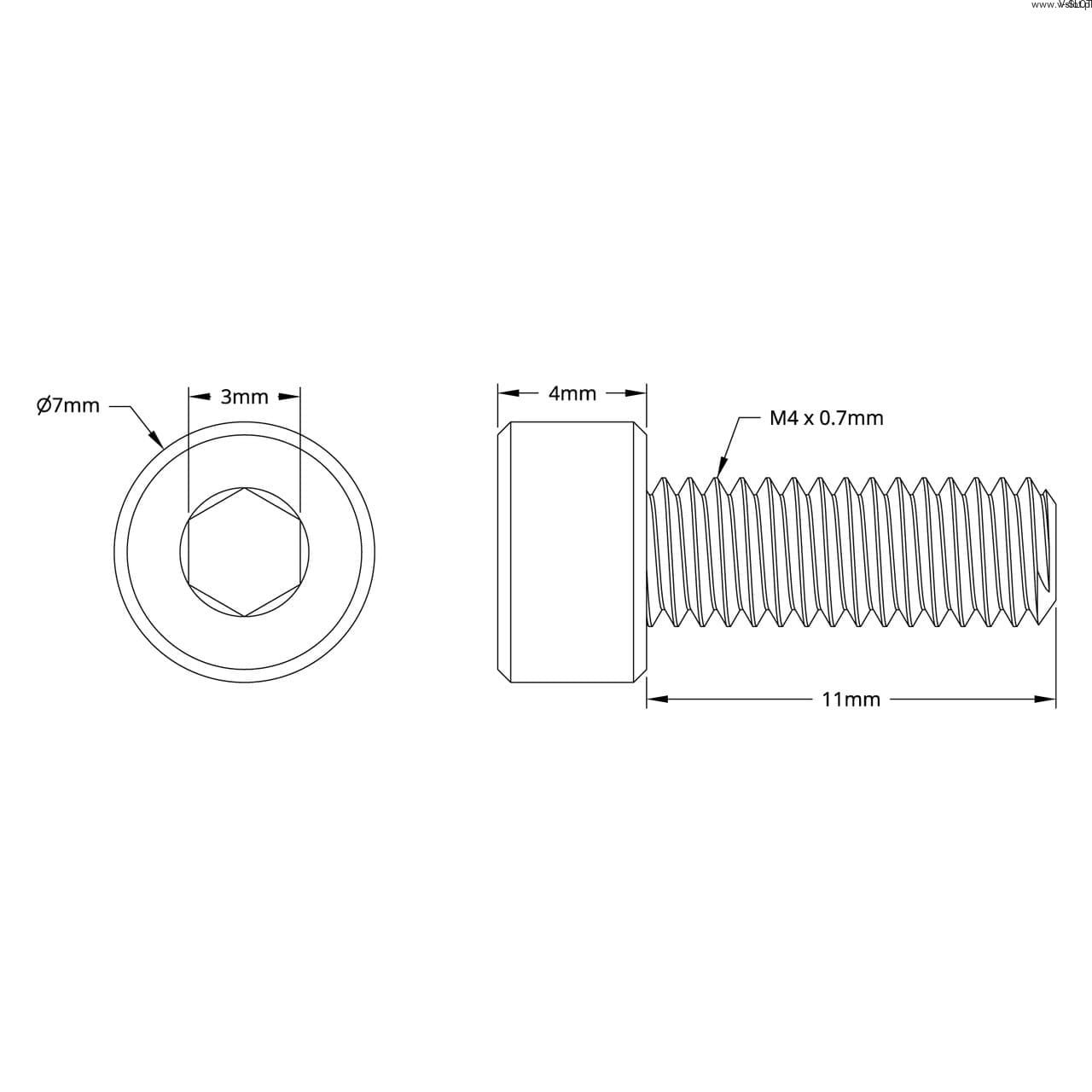 Šroub s vnitřním šestihranem řady 2800 (M4 x 0,7 mm, délka 11 mm) - 25 kusů